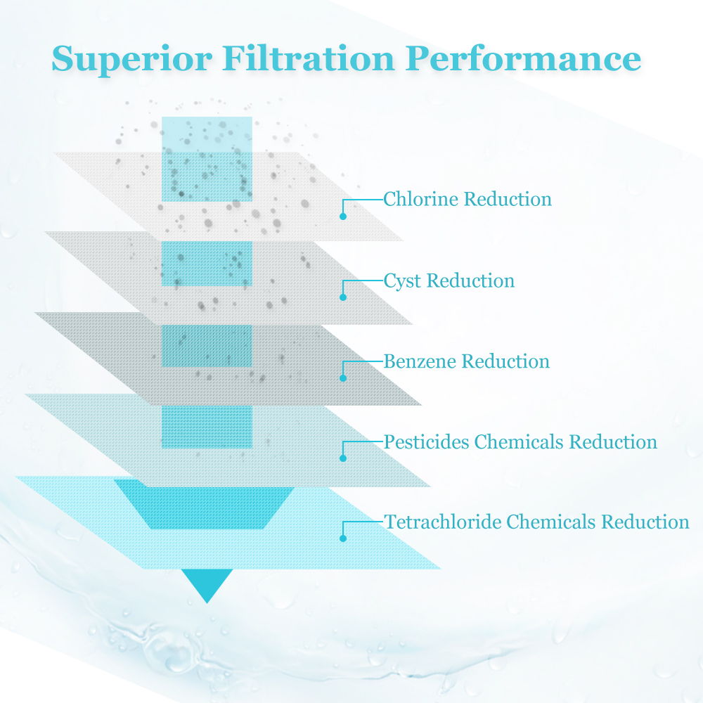 | Material | NSF Coconutshell Activated Carbon;Removes chlorine,taste and odor;Ddoes not remove beneficial minerals |