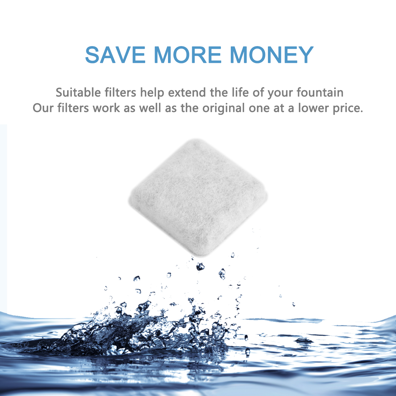 We use 100% coconut shell activated carbon as the material which can effectively remove over 90% free Chlorine residual, sediment, some organic compoundsodors and filter the bacteria in water to keep cleanness of filtered water which can encourage pets to drink more and get the proper hydration essential to their health.