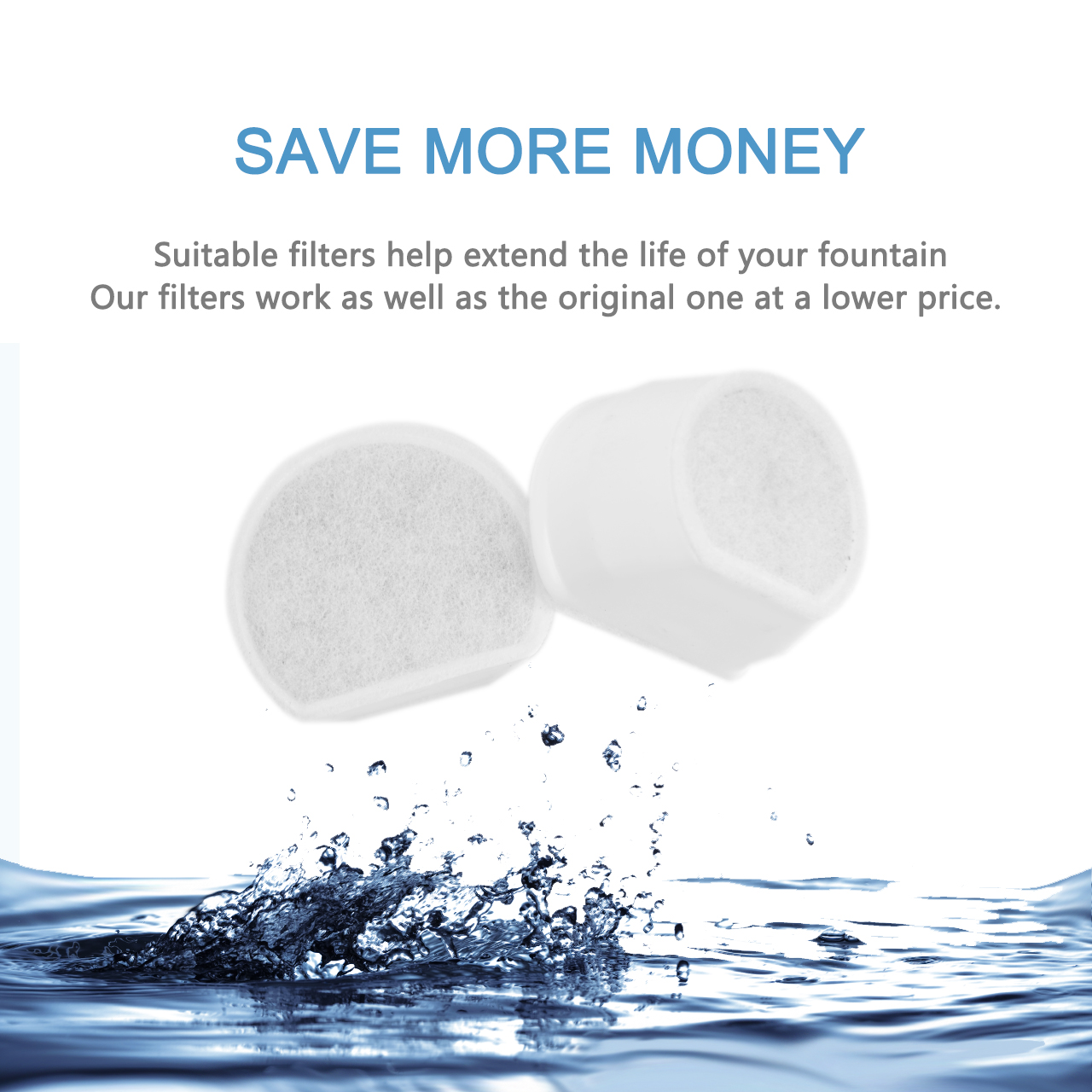 We use 100% coconut shell activated carbon as the material which can effectively remove over 90% free Chlorine residual, sediment, some organic compoundsodors and filter the bacteria in water to keep cleanness of filtered water which can encourage pets to drink more and get the proper hydration essential to their health.