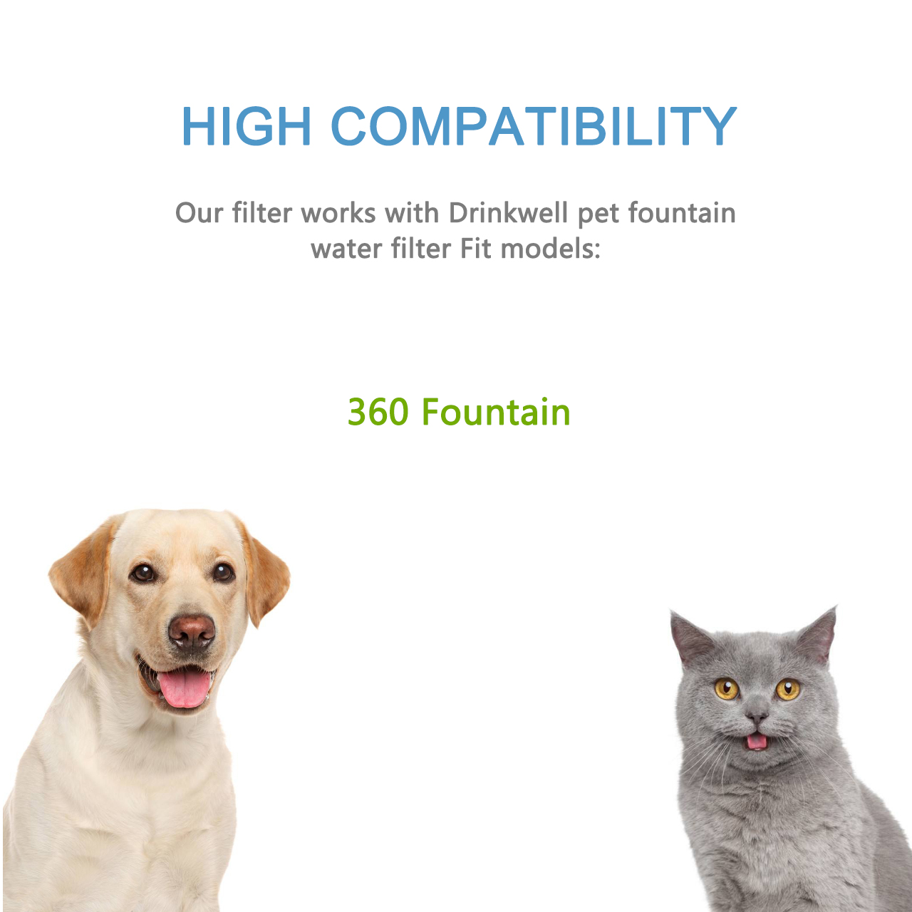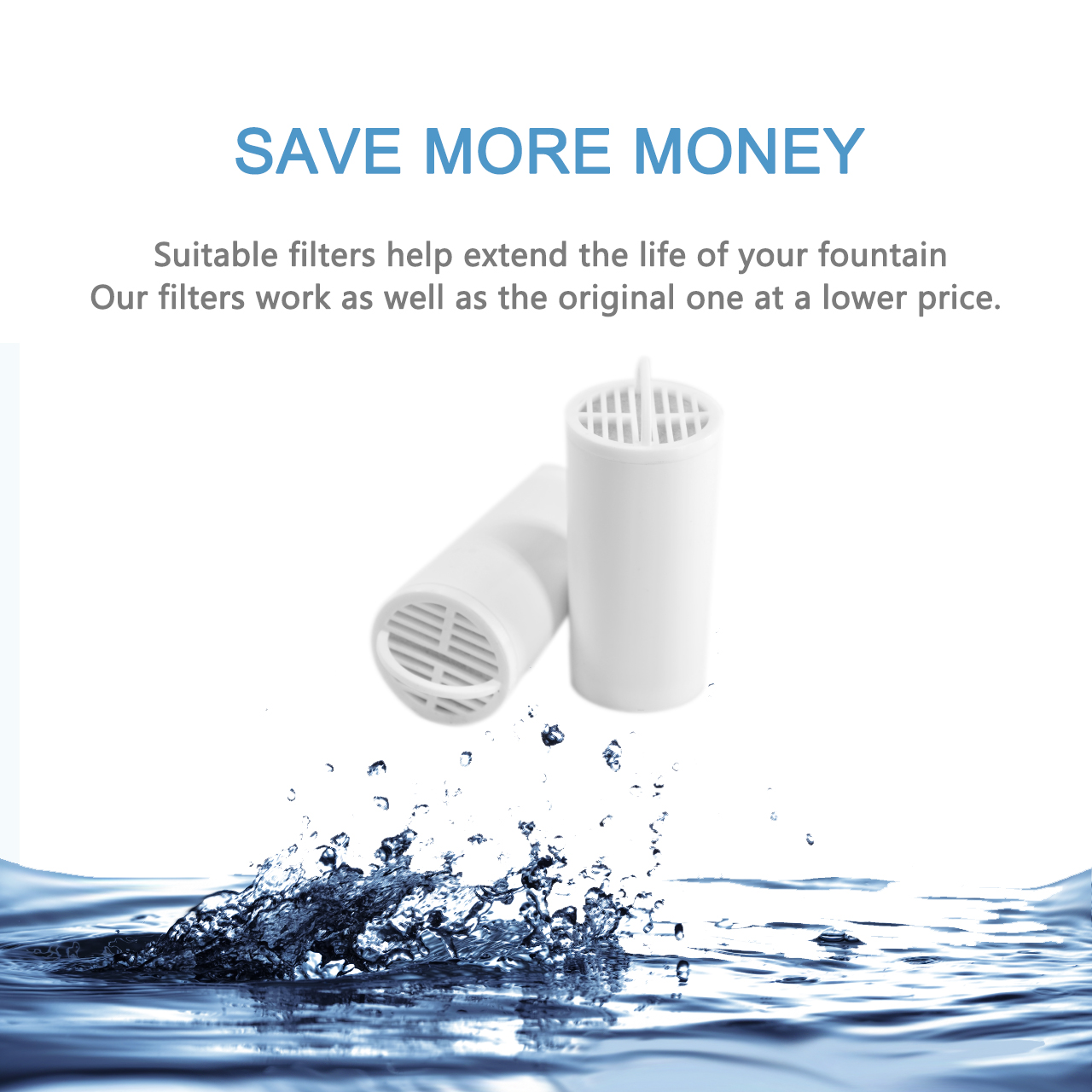 We use 100% coconut shell activated carbon as the material which can effectively remove over 90% free Chlorine residual, sediment, some organic compoundsodors and filter the bacteria in water to keep cleanness of filtered water which can encourage pets to drink more and get the proper hydration essential to their health.
